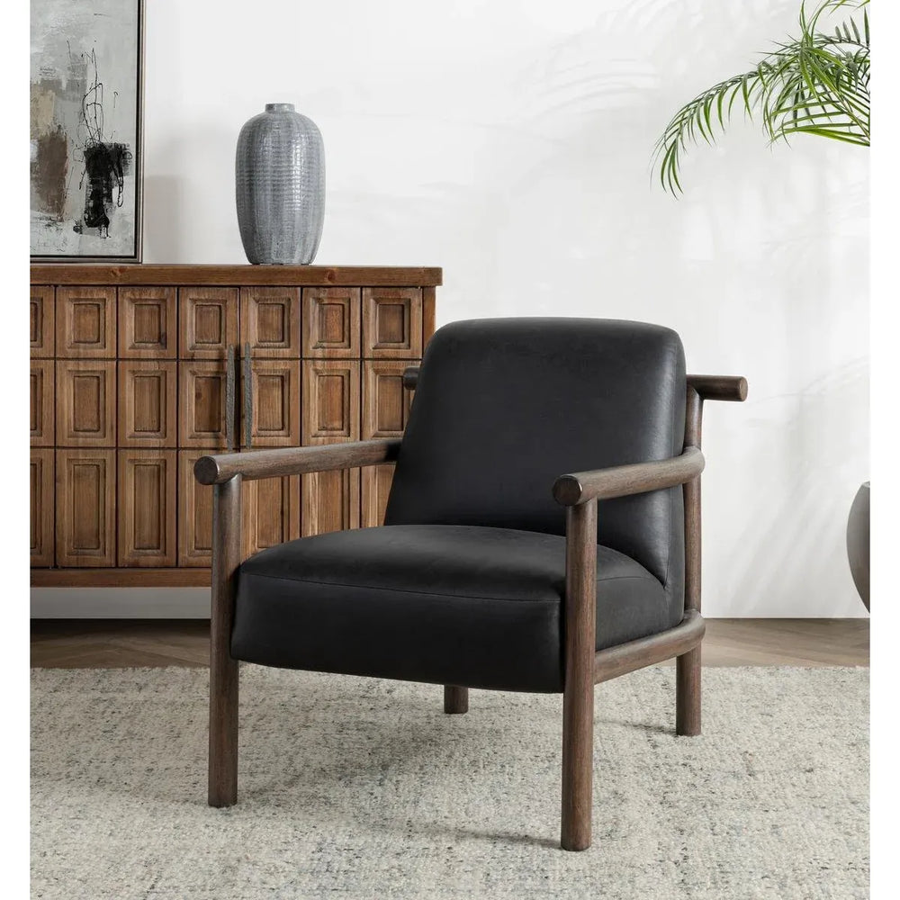 - Top Grain Leather, Rubberwood, Black